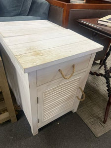 Crafted with a clean-lined silhouette and finished in a soft, weathered white or driftwood gray, the nightstand features subtle distressing for that sun-washed, lived-in look. Slatted details and brushed nickel or antique brass hardware add to its breezy, nautical-inspired character. A roomy drawer keeps bedside essentials like books, glasses, or remotes neatly tucked away, while the open lower shelf is perfect for displaying beach reads, woven baskets, or decorative accents.