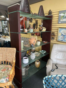 Modern Bookcase with Frosted Glass Shelves in Wood Frame – Sleek, Stylish, and Functional